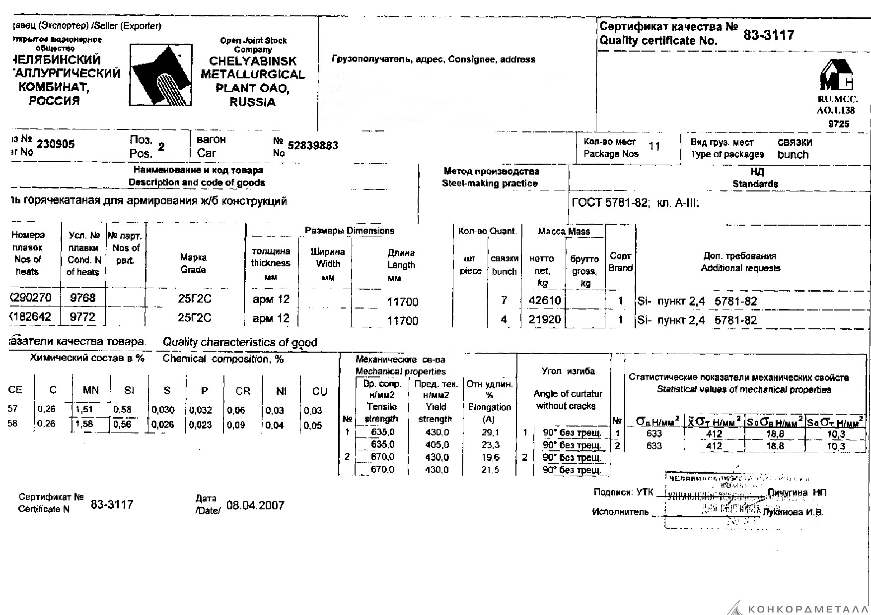 С каждой товарной позицией мы предоставляем все сертификаты и паспорта качества, а также товарно-транспортную накладную.